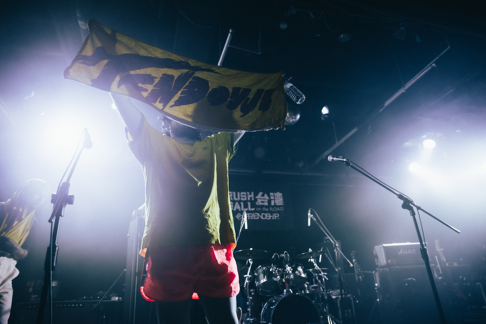 第一團由 TENDOUJI 高舉毛巾帥氣登場,最前排甚至能看到有樂迷敲鑼迎接。「RUSH BALL IN TAIWAN ARE YOU READY?」樂團隨即送上〈COCO〉,以率直的日式搖滾正面攻擊,為現場氣氛逐漸加溫。不同於一般搖滾樂團,TENDOUJI 隨著歌曲不同也會由不同人擔任主唱,因此舞台配置亦有些許調整,由兩位吉他手站在舞台兩側,貝斯手則站在中間。