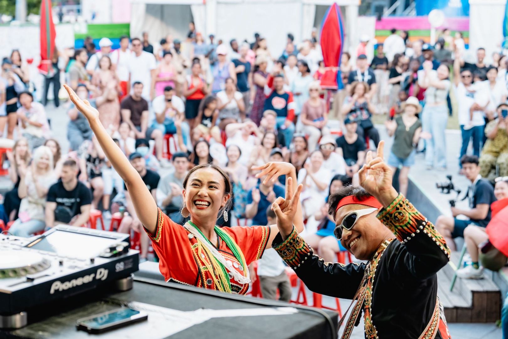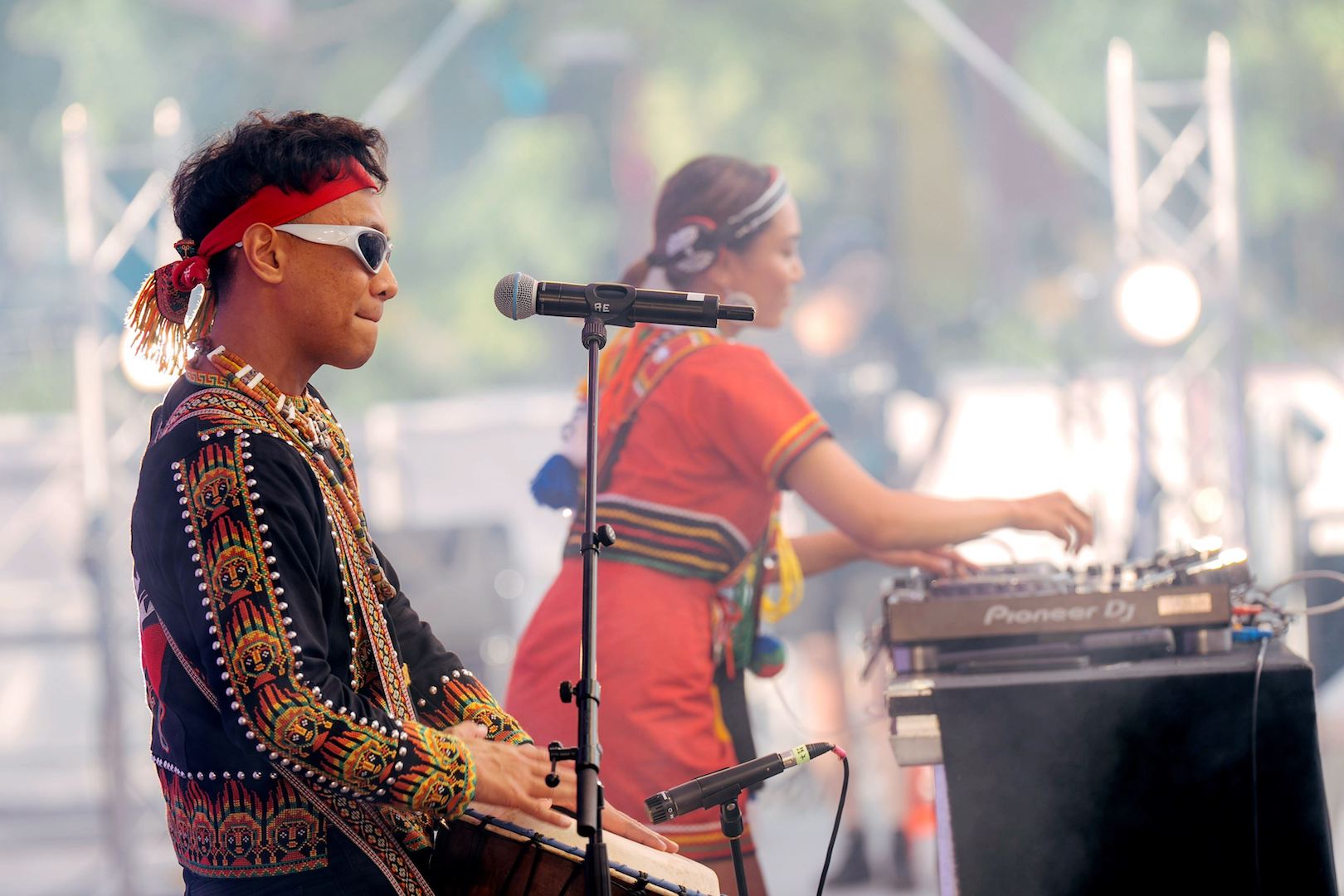 有別於前幾日的酷暑炙熱,昨天晚間巴黎氣候涼爽宜人,DJ 汝妮的開場演出及戲曲新編 2 齣劇碼,讓大家看見臺灣傳統文化加入創新的一面。來自花蓮壽豐阿美族的汝妮與魯凱族的鼓手 Lavulrase 在「臺灣原住民族日」首場演出,也特地換上傳統服飾登台。