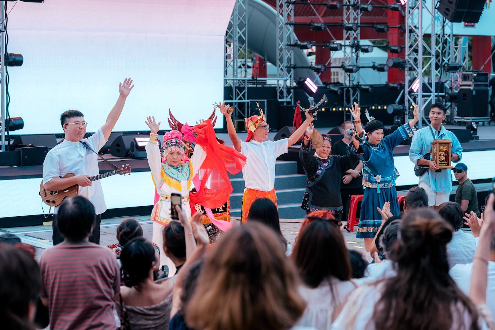延續著奧運得牌的喜悅,開場的混種亞人以電子音樂 Techno、Hard Dance、Future Bass 等元素,並結合嗩吶、排灣族鼻笛、泰雅族母語,以及現場 Live 取樣創作的手指鼓等獨特元素,持續為現場帶來充滿活力的氛圍。「臺灣是一個文化的大熔爐」,混種亞人團長張聖群說,希望讓世界看見臺灣多元的文化性,同時以「善與惡」的主題,藉由音樂及視覺,呈現臺灣強烈又時而柔軟的個性,以及面對天災及外來的種種壓力,依然將無所畏懼的精神。