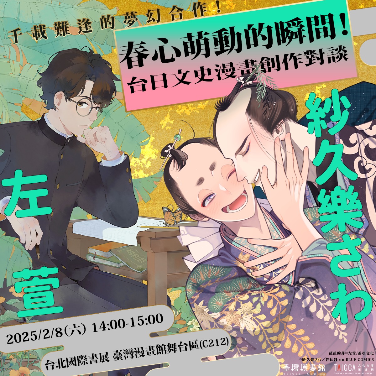 文策院也很榮幸與南美館合作,邀請到以《百與卍》獲選《這本 BL 不得了!》第一名的重量級日本漫畫家紗久樂さわ來臺參與活動,並在書展與甫以《芭蕉的芽》拿下「日本國際漫畫獎」銀獎的左萱進行對談。除此以外,臺漫館的舞台區每天都有與出版社合辦的創作者活動,包含簽名會、繪畫直播、創作分享等,透過豐富的活動形式拉近創作者與讀者的距離。
