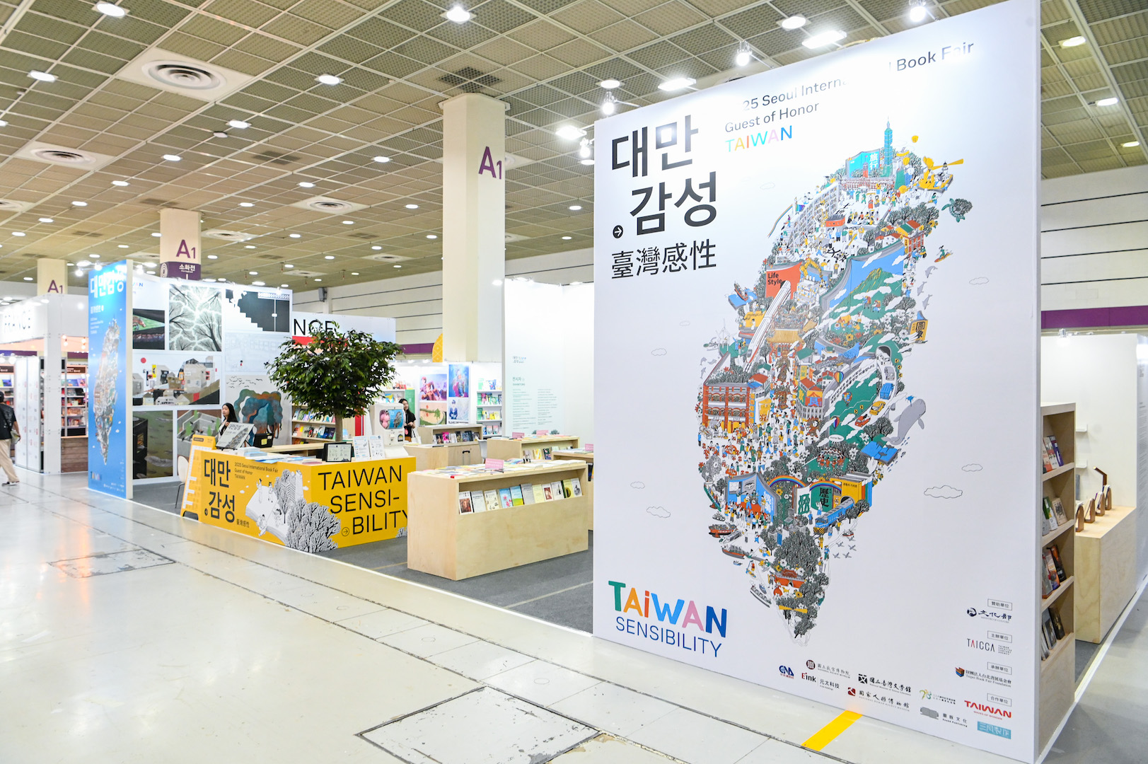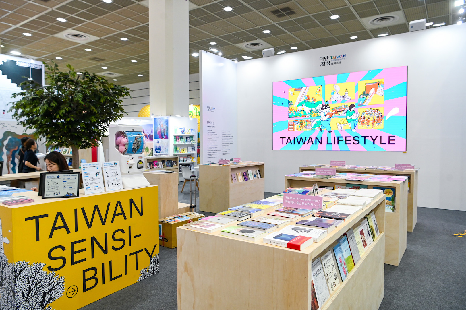 延續「臺灣感性」的主軸,臺灣館以閱讀為核心,規劃出文學、生活風格、圖像、土地與旅行、飲食與娛樂、歷史等六大展區,展示來自超過 85 家出版社、550 本精選書目,包含獲國內外獎項肯定的優秀作品,展現臺灣豐沛的出版能量。文策院也特別與韓國最大網路書店 YES24 合作線上書展及臺灣館現場銷售專區,藉由促進銷售提升臺灣作品在韓國市場的聲量。