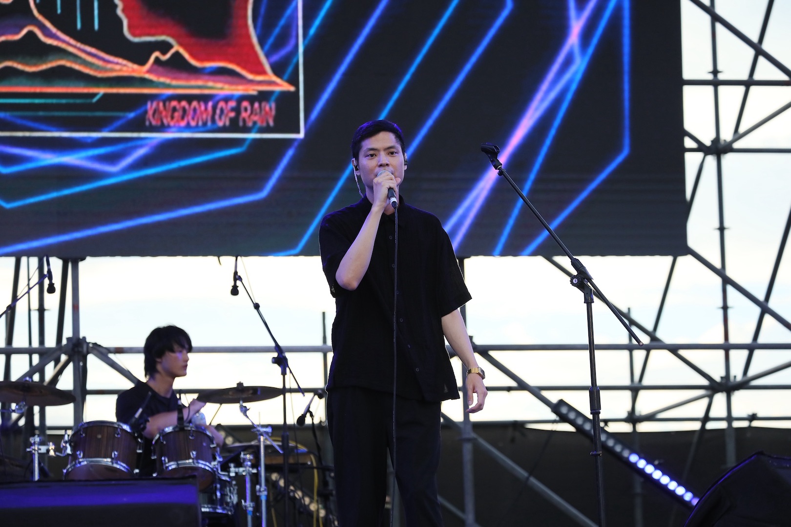 除了海洋獨立音樂大賞 10 強的精采對決外,貢寮場海洋音樂祭首(26)日也同樣熱力全開,現場氣氛自午後便隨著樂迷的聚集逐漸升溫,活動特別邀請雨國 Kingdom of Rain、餵飽豬以及血肉果汁機三組風格迥異、能量爆棚的樂團輪番登臺演出,以極具爆發力的舞臺表演和震撼音浪掀起一波波高潮,讓貢寮海邊在夕陽與音樂交織下,迴盪著夏日專屬的搖滾節奏,也為整場音樂祭揭開熱鬧又充滿張力的序幕。