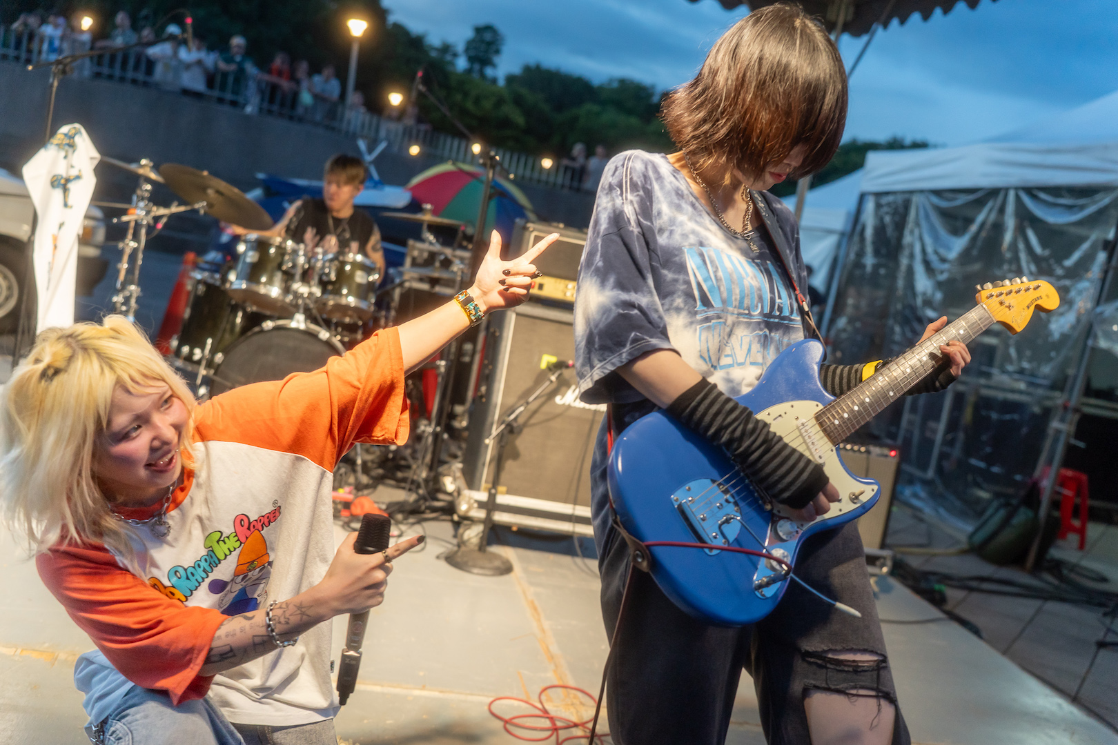 「Z 世代陽光樂團」公館青少年振奮人心的熱力演出;芒果醬作為壓軸,以音樂帶動現場氣氛、HIGH 到晚上 10 點。不止叭叭舞台精彩,猿人舞台、猿𤠣舞台、猩猩知我星、傲蕉舞台及蕉點舞台各有各的特色,以徵選方式展開的 Park Park Carnival,充滿新生代音樂人盡全力的發聲,現場人潮湧動,市集也有不少攤位還有小遊戲可以參加,整個臺北圓山花博公園都十分熱鬧。