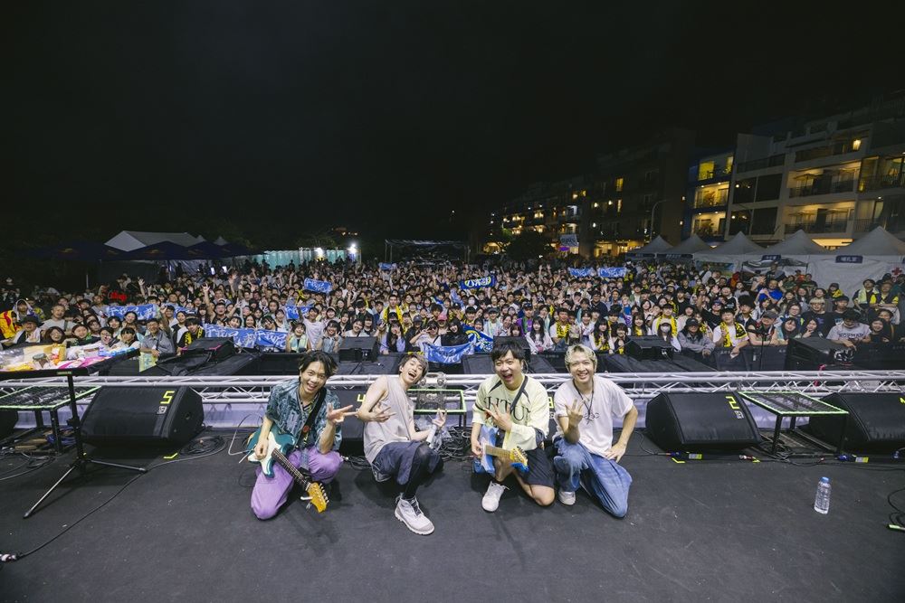 晚間登場的演出同樣熱力四射,由八青哥率先開場點燃氣氛,接續由公館青少年接力飆歌,現場情緒持續升溫,隨後登場的美秀集團更是一出場就引爆全場,超過萬名樂迷齊聚大灣遊憩區,熱情氛圍也感染周邊民宿,二、三樓陽台上可見不少歌迷走出房間隨著節奏搖擺、揮手合唱,最後 DJ YU From 慶記 KTV 延續熱度,播放多首臺灣熱門金曲,讓舞台前到街區高處瞬間成為一場震撼人心的戶外 K 歌盛宴。