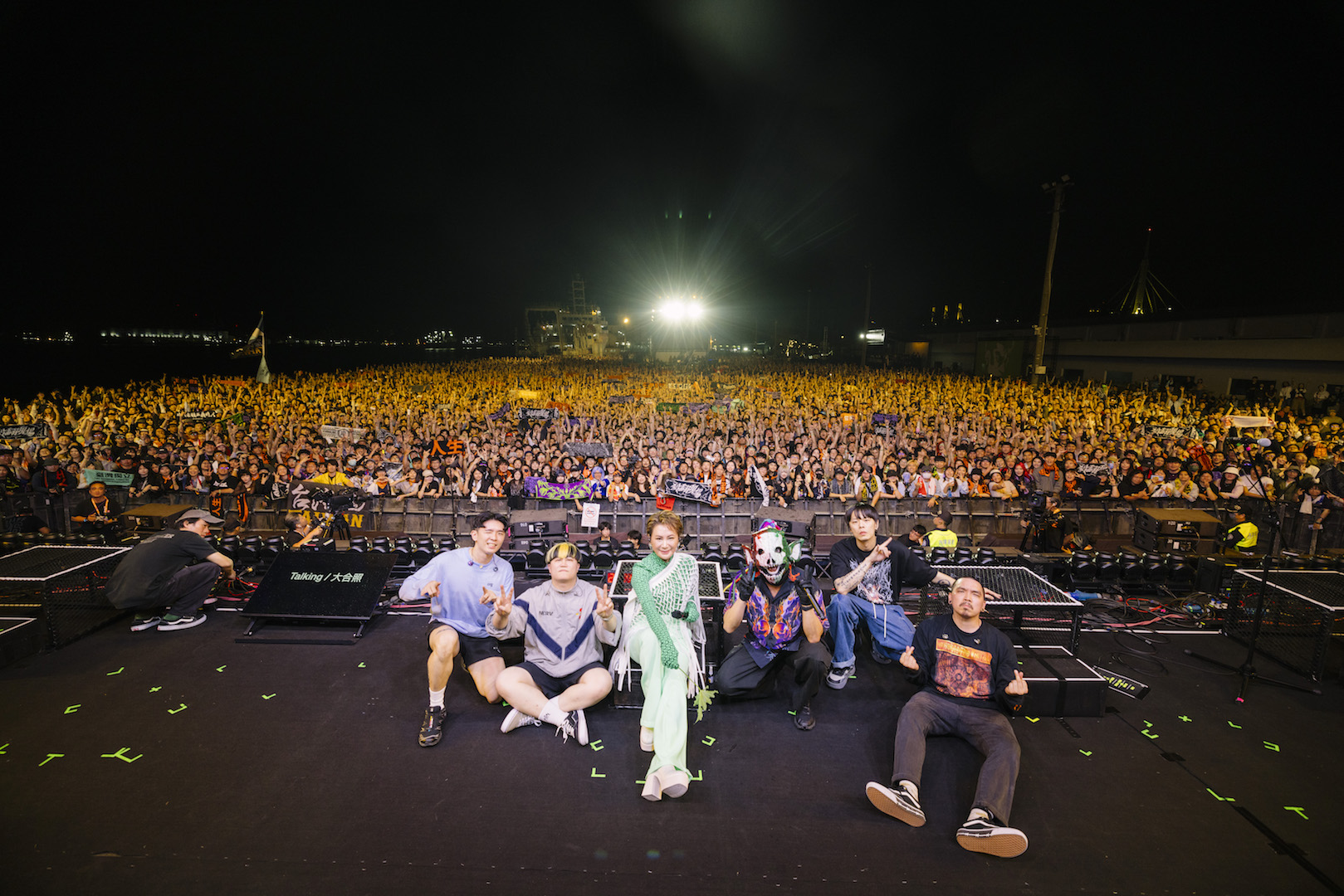 國際陣容方面,大港開唱首日邀集多海外音樂人登場,為港邊注入截然不同的聲音樣貌。日本車庫搖滾樂團 The Birthday 以厚實吉他聲牆與沉穩節奏震撼開場,其中演唱電影《灌籃高手》主題曲〈LOVE ROCKETS〉時,更引發現場樂迷共鳴,不少觀眾隨旋律跟唱,氣氛逐步升溫。