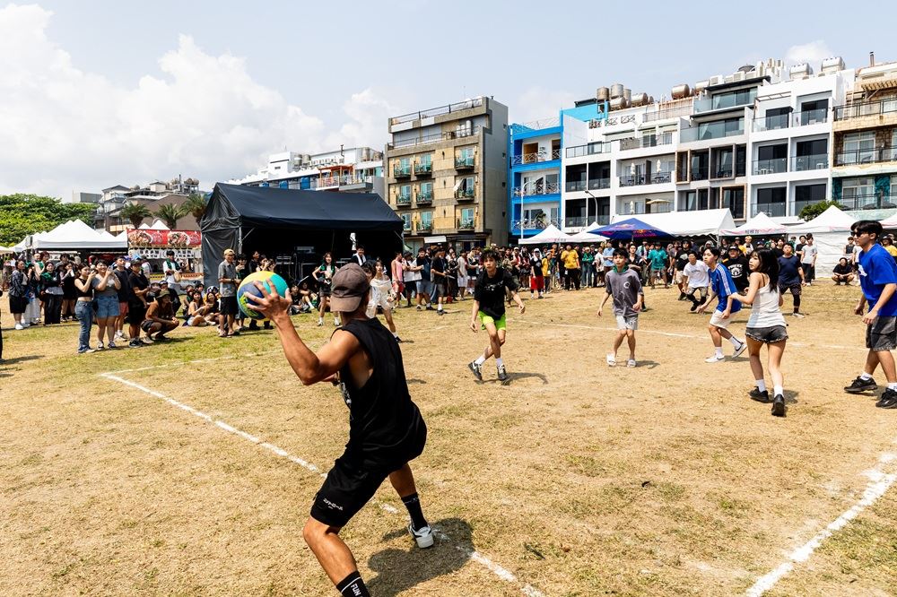 除了音樂演出外,下午大灣舞台區也展開熱血沸騰的「全明星躲避球賽」,今年共有 16 隊、128 位好手在沙灘上激烈對抗,選手們在草地上來回奔跑、閃躲與投擲,攻防節奏快速,精彩場面不斷,引來現場觀眾陣陣歡呼與掌聲,場邊民眾也紛紛加油吶喊,現場洋溢著青春與熱血活力。